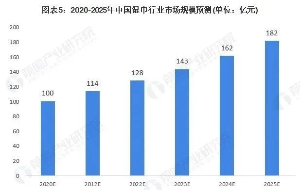由此可見(jiàn)我國濕巾市場(chǎng)仍有巨大空間,我國經(jīng)濟積極向好,居民消費能力及意愿不斷提升,企業(yè)不斷探索制造多元化的濕巾,且經(jīng)過(guò)疫情我國濕巾行業(yè)發(fā)展前景更為明朗,預計2025年市場(chǎng)規模有望達到182億元。